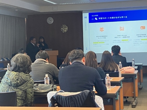 神奈川学習センターを訪問し、職員の協力のもと、施設見学(教室、化学室、図書館など)を行われました。その後、本学国際交流サークルの学生と意見交換を実施し、3グループに分かれて放送大学での学び等について活発に交流しました。本プログラムはOUMの教員や本学の学生にとって非常に有意義であり、喜びの声が寄せられました。