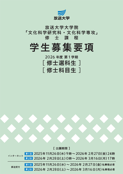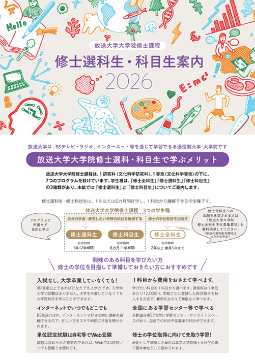 放送大学ではウェブサイトでの体験を向上させるため、Cookieと呼ばれる機能を使用しています。Cookieについての詳細を確認したい場合、「Cookieについての詳細を見る」を押してください。