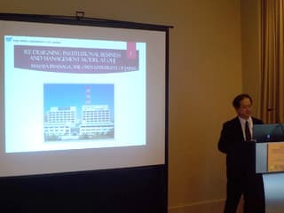 Changing the place, Professor Yuan Fujie introduced OUJ to the delegates. In the lunch meeting, Vice President Liu gave a presentation on the outline of Hunan Radio and TV University, followed by the discussion in regard to the life-long learning and the operation of study centers.
