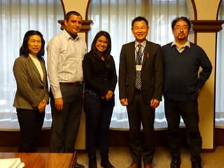 President Kisugi, Professor Nikoh of Nature and Environment program and other staffs welcomed the researcher.