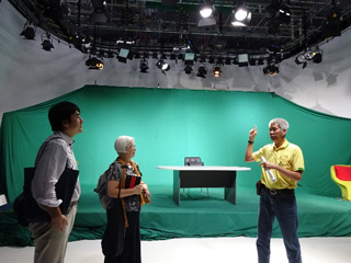 Afterwards, President Kisugi welcomed the delegation at a luncheon meeting, where lively conversation took place around the table. The delegation then toured the Chiba Study Center, TV studio, and master control room, showing particular interest in the equipment in the TV studio and sub control room, and taking a lot of photos.