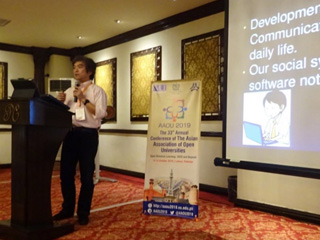 Based on the main theme, "Transforming Lives and Societies," Professor Aoki delivered a speech titled "Online student workload: perceptions of workload and actual self-log of study time at the Open University of Japan" and Professor Suzuki made a presentation under the title "A command-line based exam generation system for computer science education."