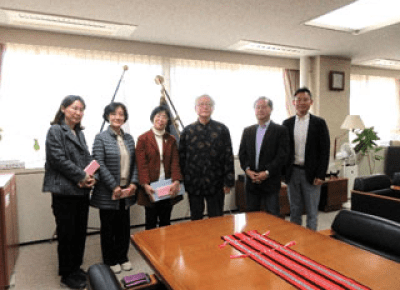 The delegation was welcomed by Professor Yamada, the chairperson of International Exchange Committee, and Professor Yuan of the Psychology and Education Course. After an outline of OUJ by Professor Yuan, the hosts and visitors exchanged souvenirs and took pictures.