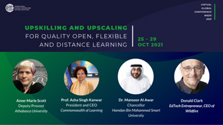 Based on the main theme, "Upskilling and upscaling for quality open, flexible and distance learning,” and three subthemes, the conference had four keynote addresses, multiple academic paper sessions, a concise impact talks session, digital poster sessions with short video pitches, lab workshops, and panels, all in various time zones.