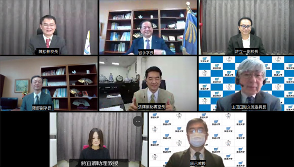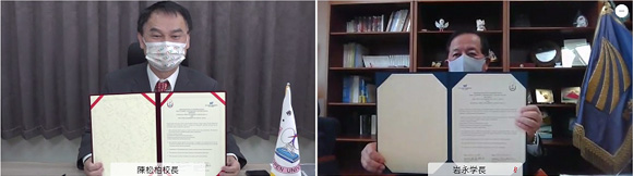 OUJ President Professor Masaya Iwanaga and NOU President Professor Sung-Po Chen signed the agreement on November 26, 2021. The signing ceremony was held online, due to the COVID-19 pandemic.