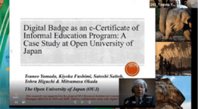 Professor Yamada showed a video presentation titled “Digital badge as an e-certificate of informal education program: A case study at the Open University of Japan,” which outlined the results of his team’s pilot implementation of “digital badges” at OUJ extension programs. They compared two prototypes, IMS Open Badge version 2 and Blockcerts, and clarified that different badge delivery channels should be prepared depending on recipients’ readiness.