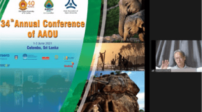 Hosted by the Open University of Sri Lanka, the 34th Asian Association of Open Universities (AAOU) Annual Conference was held at Cinnamon Grand Colombo on June 1–3, 2021. About 200 university officials and educational experts in the field of open and distance learning from 23 countries participated in the conference. Due to the COVID-19 pandemic, the conference was conducted in hybrid form combining onsite and online attendance and presentations, and OUJ participated online.
