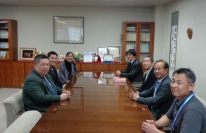 Subsequently, a courtesy visit was arranged with President Iwanaga and Vice President Hayasi, during which an exchange of commemorative gifts took place. A luncheon was then held, which President Iwanaga also attended, providing an opportunity for further discussion.
