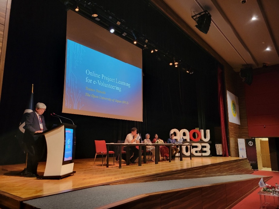 Prof. Yamada had the presentation titled “Online Project Learning for e-Volunteering”. COVID-19 Pandemic brought about the interruption of volunteering activities for assistance in real space with its tremendous loss and misfortune. As a countermeasure, e-volunteering activities disseminated rapidly, and innovative cases were reported in both domestic and international contexts. The author has offered a graduate course focusing on the relation between information society and volunteering activities from 2018 as the chief instructor. The course started as “Volunteering Activities in Information Society” and evolved into “Cyber-volunteering” in the midst of the pandemic. The course is provided twice a year, that is, in both First and Second semester and 183 students (includes repeaters) enrolled and 145 of them were awarded credits in 2018-2023.