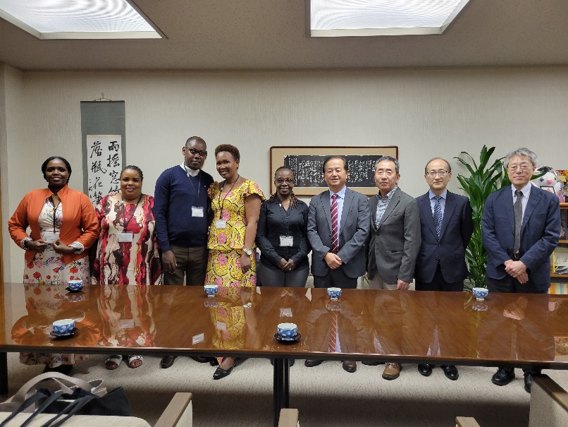 Subsequently, a courtesy visit was made to President Prof. Masaya Iwanaga. Vice President Prof. Tomotsugu Kondo, Vice President Prof. Tooru Hayasi, and Head of International Committee Prof. Naruo Nikoh also joined the meeting. During the visit, there was an exchange of views on the education situation in Rwanda and the activities of OUJ, which provided valuable insights for both parties.