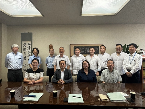 On the first day of the training, a courtesy visit was held at the Office of the President. Seven members from the Open University of Japan, including President Iwanaga, participated, and exchanged views on topics such as online education.