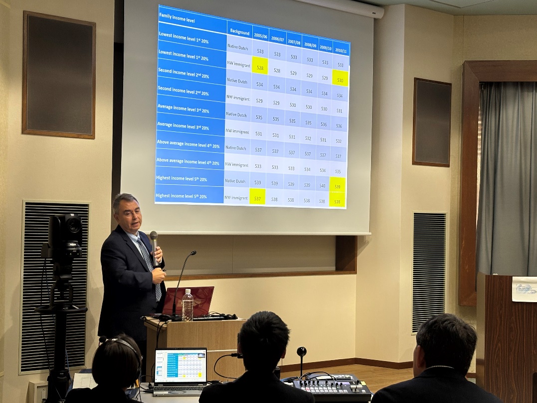 In the second session, Prof. Kutlay Yagmur, a professor at Tilburg University, the Netherlands, gave a lecture titled “Promoting diversity policies in higher education: Aims of inclusive education programs in the Netherlands.” He talked about the current issues in immigrant education, particularly in primary and secondary education, in the Netherlands., He also explained the MOSAIC Program, which aims to help immigrants integrate into society. Once again, students and faculty actively asked questions during the Q&A.